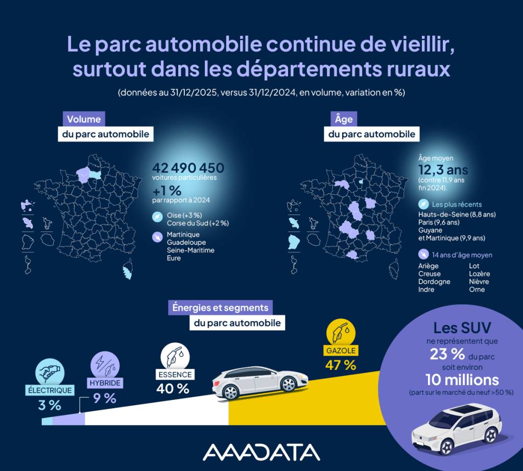 • 👉 FOCUS : le parc automobile continue de vieillir, surtout dans les départements ruraux.