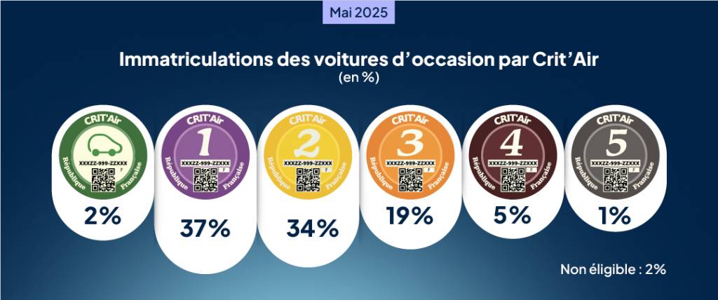 Le vote de l’Assemblée nationale en faveur de la suppression des ZFE reste encore à confirmer par l’adoption finale de la loi de simplification. Selon les métropoles, l’enjeu concerne surtout les modèles à vignette Crit’Air 3, les plus nombreux avec 19 % des transactions en mai (- 4 %) tandis que ceux à vignettes Crit’Air 4, 5 et non classés n’en représentent plus que 8 %. Les éventuelles conséquences de ces décisions sur le marché seront à suivre dans les prochains mois.