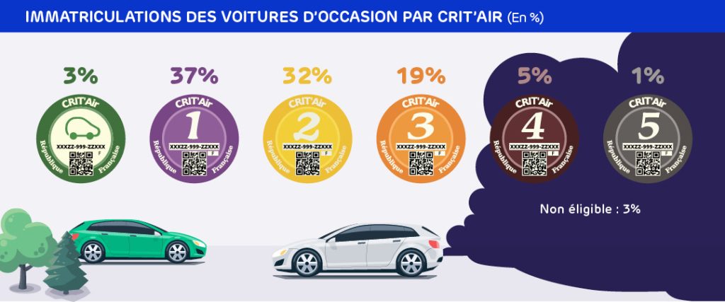 À l’échelle nationale, les modèles de voiture à vignette Crit’Air 3 représentent encore près d’une transaction sur cinq en VO. Pour mémoire, il s’agit des voitures diesel immatriculées pour la première fois de 2006 à fin 2010 ou bien les voitures essence de 1997 à fin 2005.